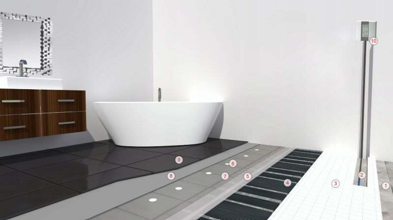 2. De verwarmingsfolie wordt op of onder de dekvloer gemonteerd (afhankelijk van de fase van het project of de renovatie).